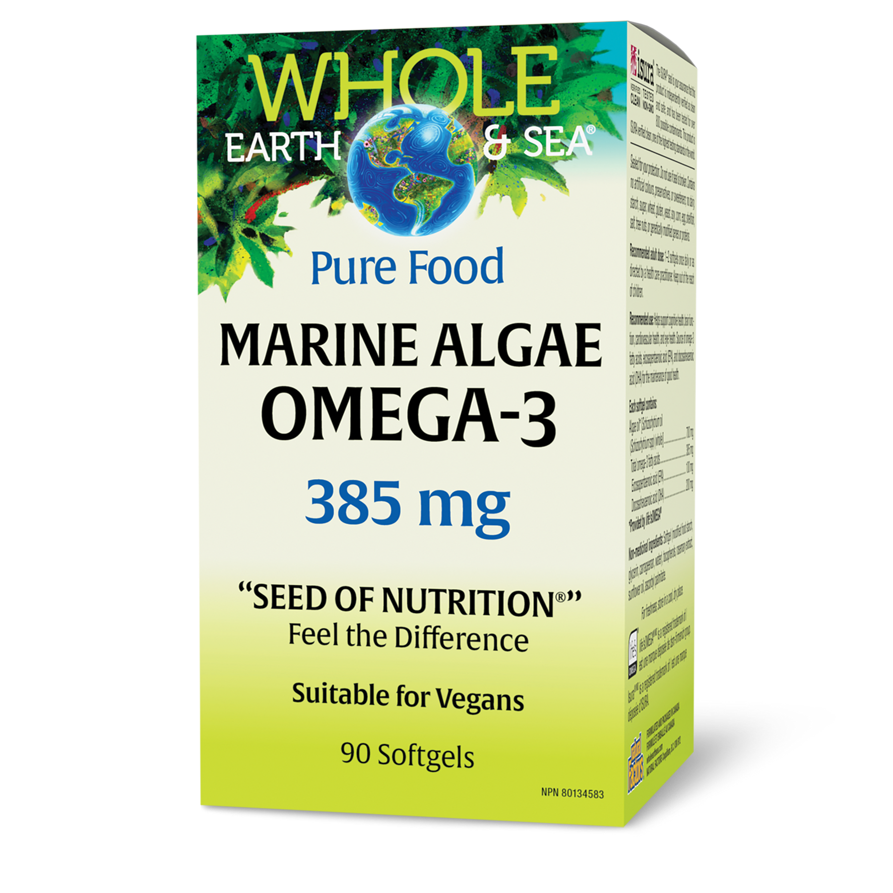 Whole Earth & Sea Marine Algae Omega-3 is a vegan-friendly, ocean-friendly formula providing a direct source of long-chain omega-3 fatty acids, eicosapentaenoic acid (EPA) and docosahexaenoic acid (DHA). These essential fatty acids help support cardiovascular and cognitive health as well as visual function, but they are hard to find in a fish-free diet.