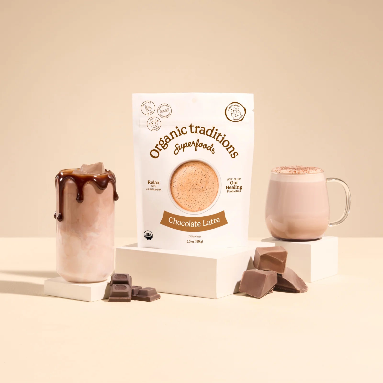 01. Add 1.5 tablespoons of Organic Chocolate Latte to a mug