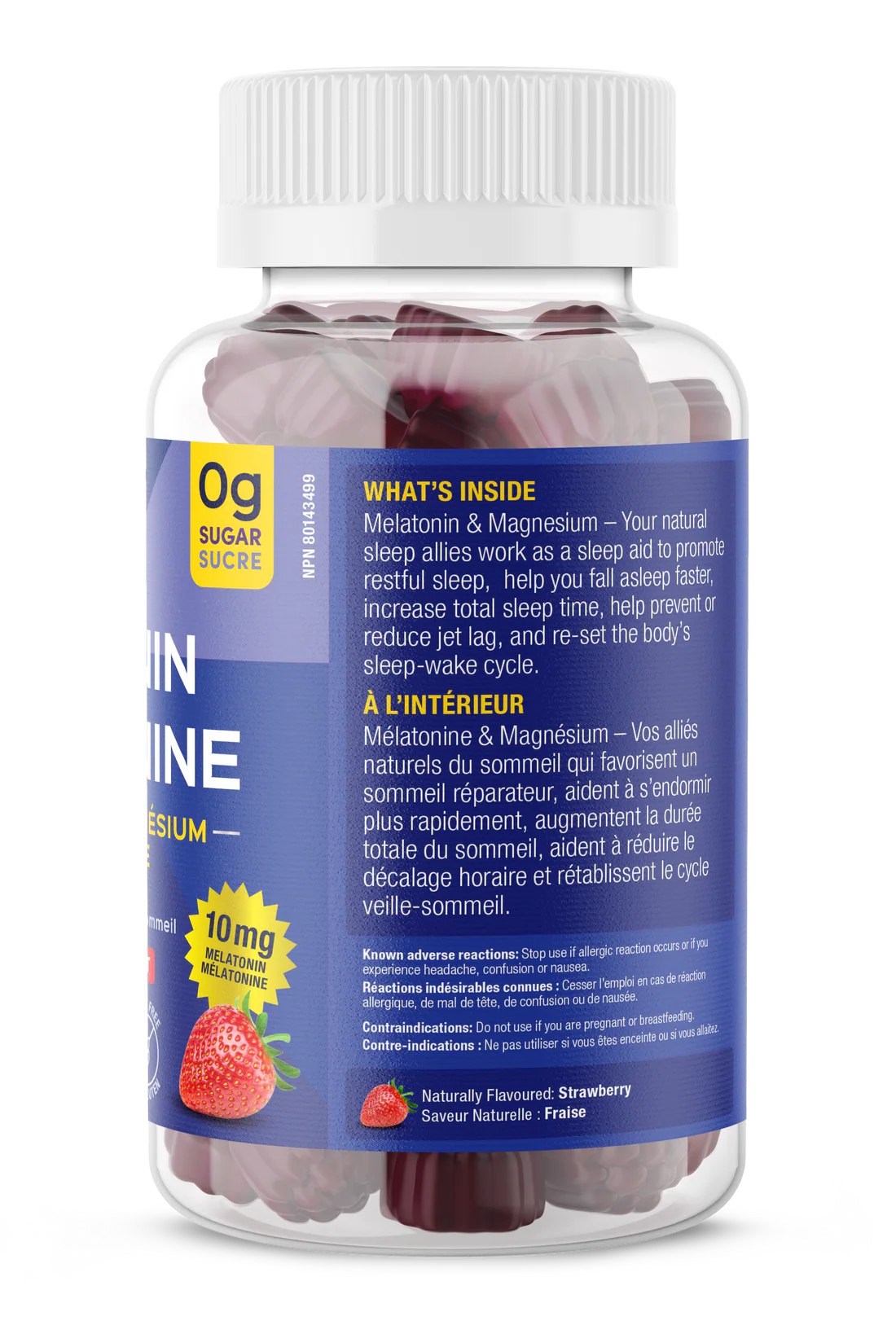 Melatonin & Magnesium - Your natural sleep allies work as a sleep aid to promote restful sleep, help you fall asleep faster, increase total sleep time, help prevent of reduce jet lag, and re-set the body's sleep-wake cycle.